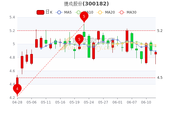 6月14日晚间复盘消息,捷成股份最新报4.88元,跌0.41%。成交量70.26万手,总市值为125.66亿元。