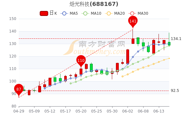 6月15日消息,炬光科技7日内股价下跌0.9%,最新报128.75元,市盈率为128.75。