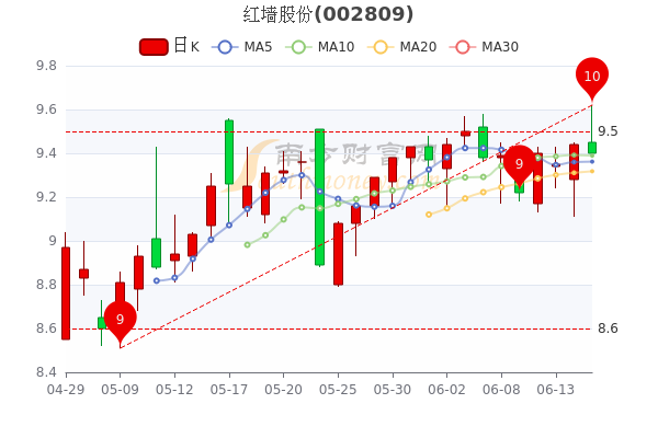 6月15日消息,红墙股份7日内股价上涨0.21%,最新报9.48元,成交额2397.59万元。