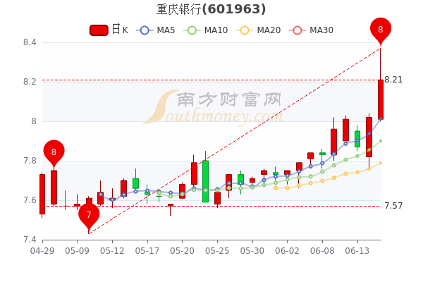 6月15日重庆银行(601963)开盘报8.01元,截至15点收盘,该股报8.24元涨2.74%,成交1.68亿元,换手率2.96%。