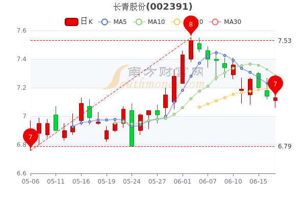 6月17日盘后消息,长青股份5日内股价下跌0.84%,今年来涨幅下跌-14.31%,最新报7.13元,跌0.14%,市盈率为18.84。