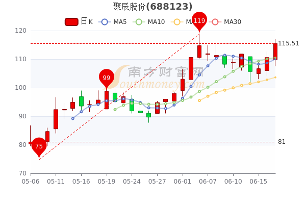 6月17日盘后消息,聚辰股份最新报价115.51元,涨4.47%,3日内股价上涨7.65%;今年来涨幅上涨42.57%,市盈率为128.34。