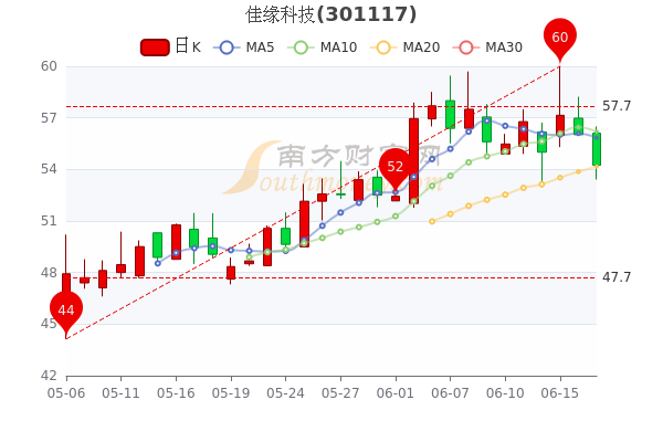 6月17日,佳缘科技开盘报价56.11元,收盘于54.24元,跌3.18%。今年来涨幅下跌-51.16%,总市值为50.04亿元。