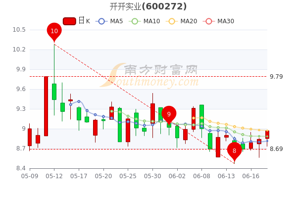 6月20日开开实业3日内股价上涨1.79%,截至下午三点收盘,该股报8.97元涨1.47%,成交5304.66万元,换手率3.74%。