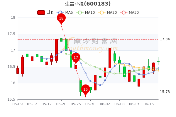 6月20日盘后消息,生益科技5日内股价上涨3%,今年来涨幅下跌-39.72%,最新报16.64元,涨0.12%,市盈率为13.53。