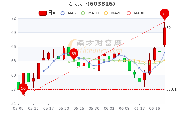 6月20日顾家家居(603816)开盘报66.31元,截至15时,该股报69.99元涨7.66%,成交6.15亿元,换手率1.4%。