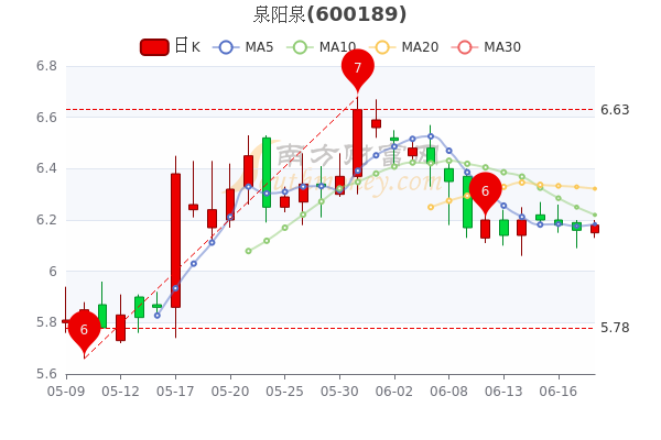 6月20日盘后消息,泉阳泉最新报6.18元,成交量5.95万手,总市值为44.2亿元。