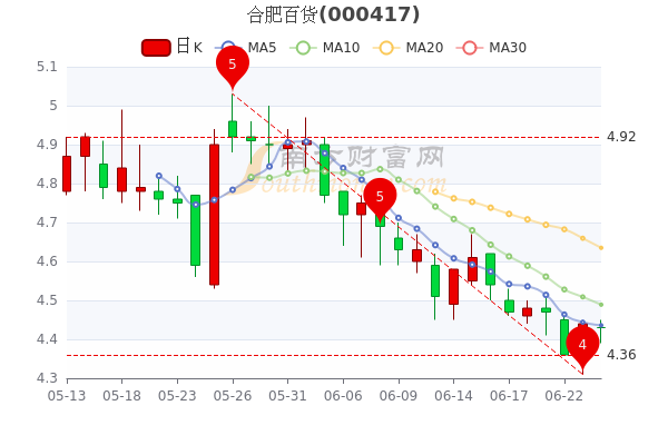 6月24日消息,合肥百货最新报价4.43元,3日内股价上涨1.58%;今年来涨幅下跌-2.48%,市盈率为19.1。