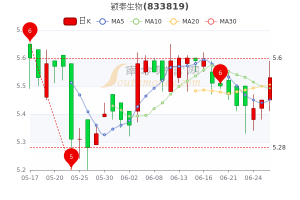 6月28日盘后消息,颖泰生物开盘报价5.45元,收盘于5.53元。总市值为67.79亿元。