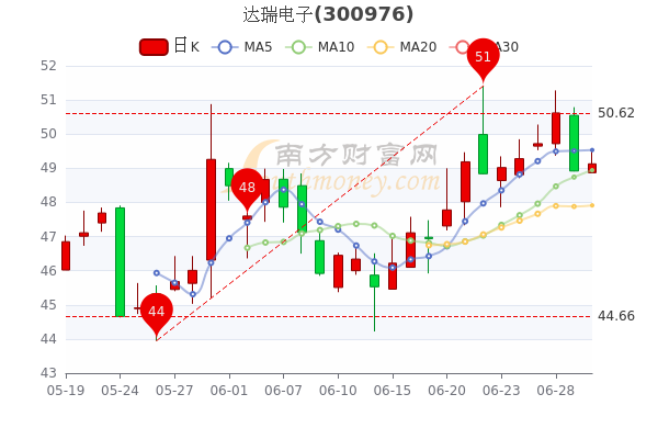 6月30日盘后消息,达瑞电子最新报价49.13元,3日内股价下跌3.03%,市盈率为15.21。