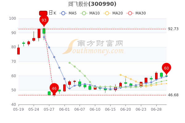 6月30日讯息,同飞股份3日内股价下跌3.85%,市值为55.88亿元,跌0.13%,最新报59.4元。