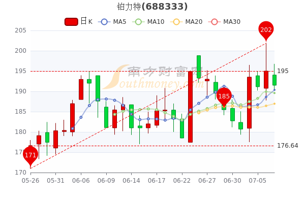 7月7日消息,铂力特7日内股价上涨3.14%,最新报192元,市盈率为-285.82。