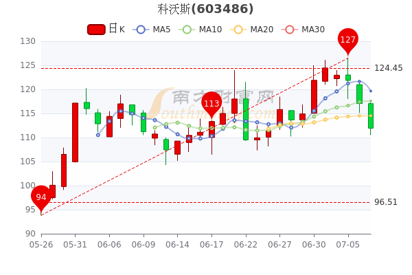 科沃斯(603486)跌4.38%,报111.92元,成交额6.19亿元,换手率0.97%,振幅-4.383%。
