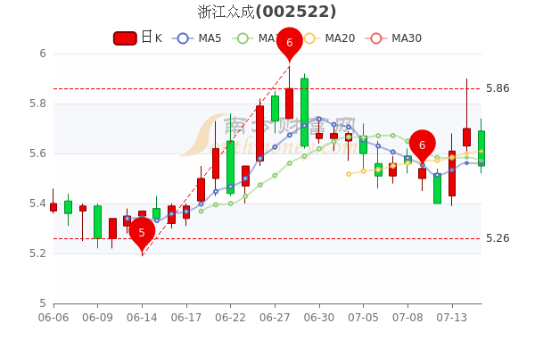 7月15日消息,浙江众成7日内股价上涨3.33%,最新报5.55元,成交额3331.74万元。