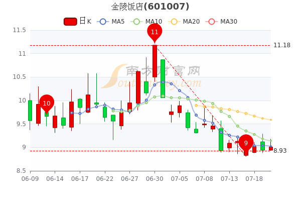 7月20日盘后消息,金陵饭店最新报9元,成交量6.54万手,总市值为35.14亿元。
