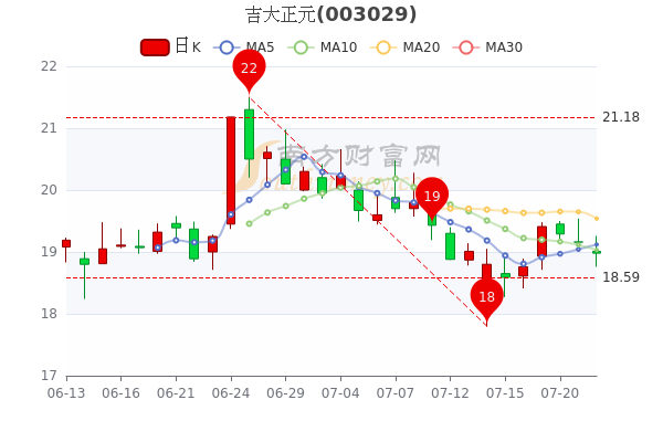 7月22日,吉大正元开盘报价19.01元,收盘于18.98元,跌0.94%。今年来涨幅下跌-12.28%,总市值为35.38亿元。