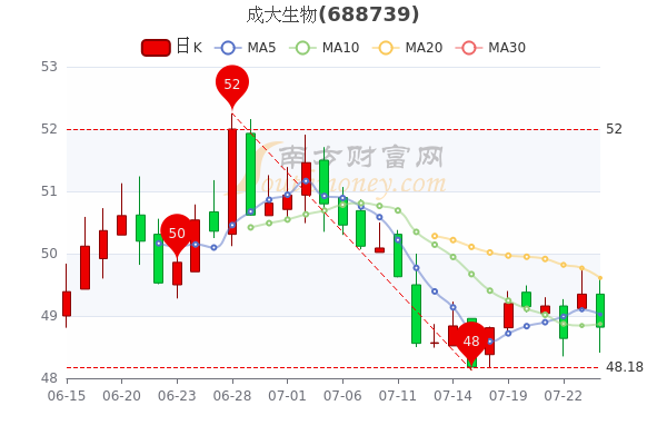 7月26日盘后消息,成大生物最新报价48.82元,3日内股价上涨0.37%,市盈率为20.86。