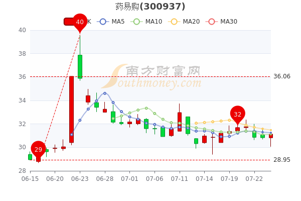 7月26日消息,药易购5日内股价下跌1.8%,最新报31.08元,成交量1.2万手,总市值为29.78亿元。