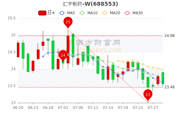7月29日收盘消息,汇宇制药-W最新报23.56元,成交量4367手,总市值为99.8亿元。