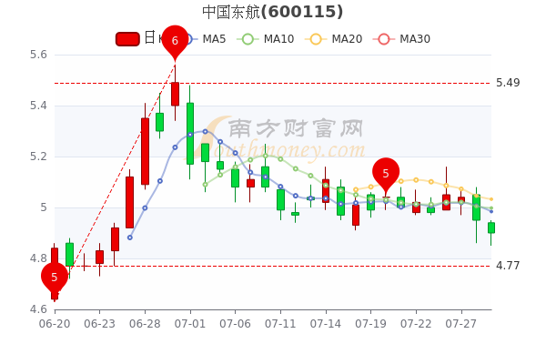 7月29日,中国东航开盘报价4.94元,收盘于4.9元,跌1.01%。当日最高价为4.95元,最低达4.85元,成交量24.86万手,总市值为921.07亿元。
