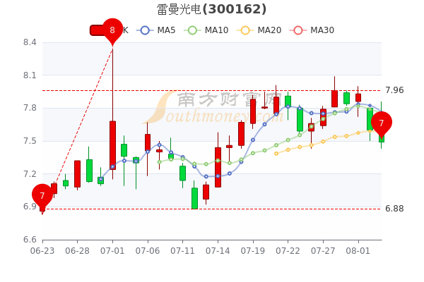 8月3日晚间复盘消息,雷曼光电最新报价7.49元,3日内股价下跌5.87%,市盈率为53.5。