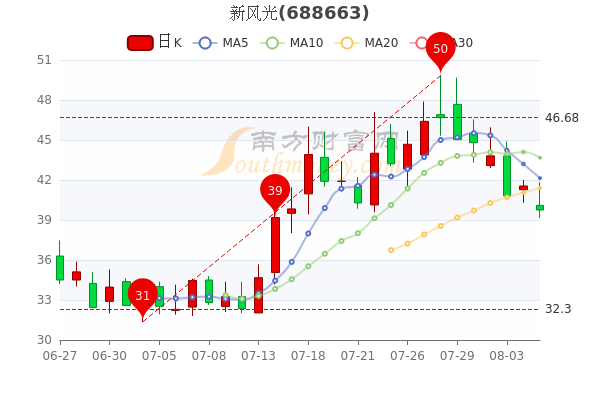 8月5日收盘消息,新风光5日内股价下跌12.7%,截至15时收盘,该股报39.75元,跌4.33%,总市值为55.63亿元。