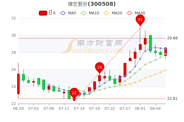 8月8日晚间复盘消息,维宏股份今年来涨幅下跌-43.17%,最新报28.57元。