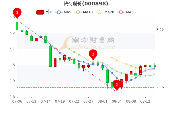 8月16日消息,鞍钢股份开盘报价3元,收盘于2.99元。3日内股价下跌0.33%,总市值为281.15亿元。