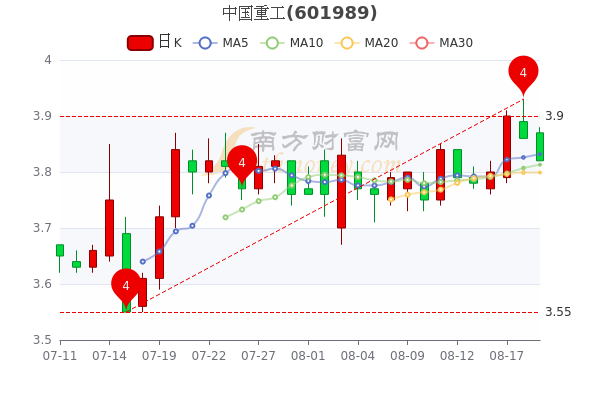 8月19日消息,中国重工开盘报3.87元,截至下午3点收盘,该股跌1.04%,报3.82元。换手率0.37%,振幅-1.036%。