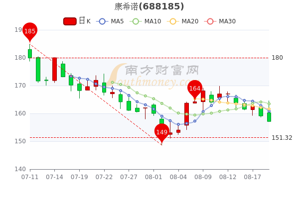 8月19日消息,康希诺今年来涨幅下跌-76.95%,截至下午3点收盘,该股报157.11元,跌1.25%,换手率2.04%。