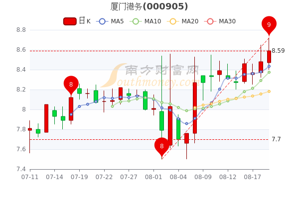 8月19日消息,厦门港务5日内股价上涨3.73%,今年来涨幅上涨8.61%,最新报8.59元,市盈率为22.42。