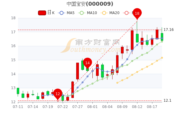 8月19日中国宝安3日内股价下跌0.98%,截至15时,该股报16.39元跌4.49%,成交20.01亿元,换手率4.69%。
