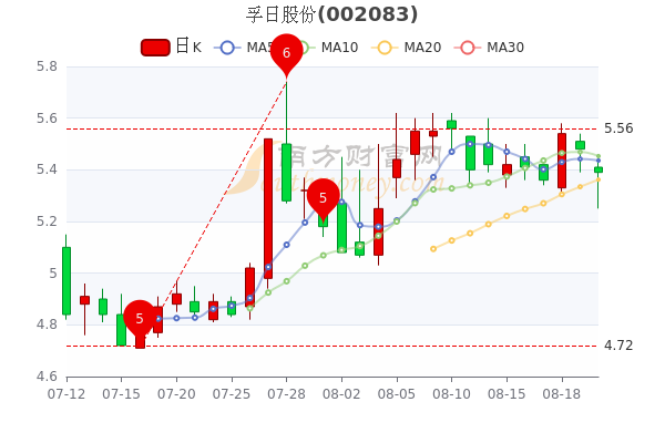 8月22日消息,孚日股份7日内股价下跌0.56%,截至15时,该股报5.39元,跌1.64%,总市值为44.27亿元。