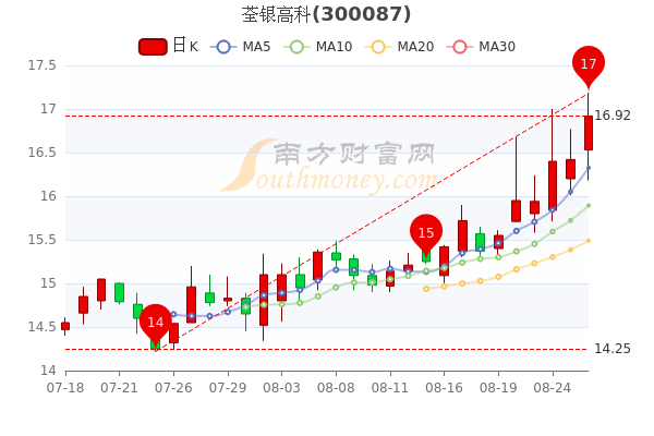 8月26日消息,荃银高科5日内股价上涨5.73%,最新报16.92元,成交量38.92万手,总市值为114.49亿元。