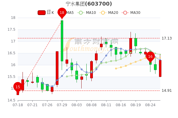 8月26日消息,宁水集团开盘报15.5元,截至15点,该股涨2.6%,报16.2元。当前市值32.93亿。