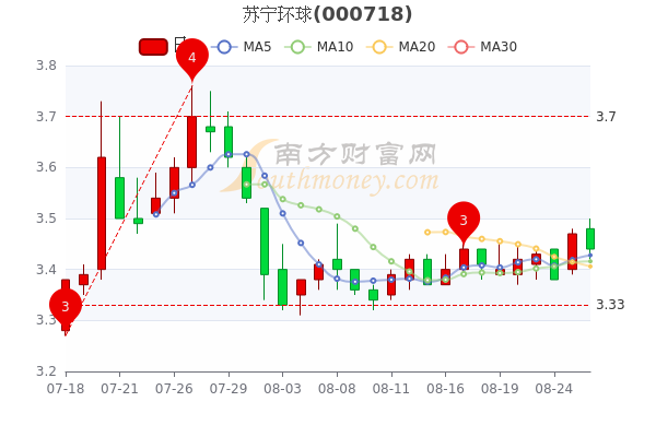 8月26日消息,苏宁环球最新报3.44元,跌0.86%。成交量16.6万手,总市值为104.39亿元。