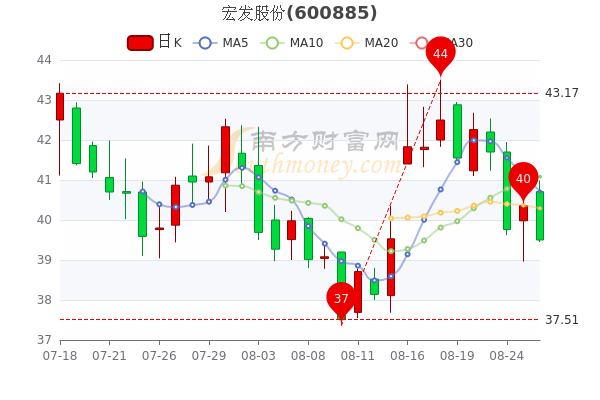 8月26日宏发股份(600885)开盘报40.71元,截至15点,该股报39.5元跌2.13%,成交2.09亿元,换手率0.5%。