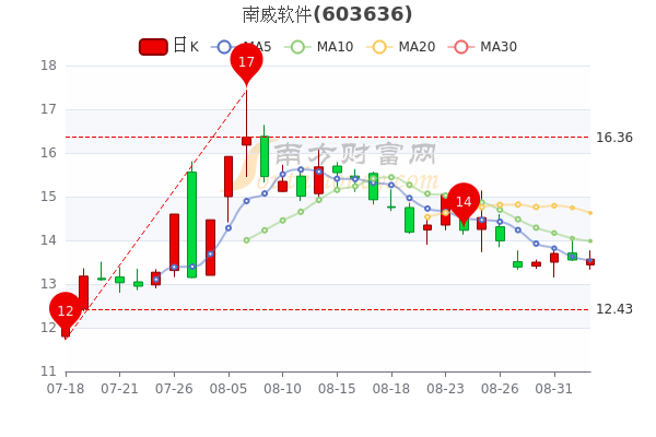9月2日南威软件开盘报价13.44元,收盘于13.57元,涨0.15%。当日最高价为13.77元,最低达13.33元,成交量8.48万手,总市值为80.17亿元。