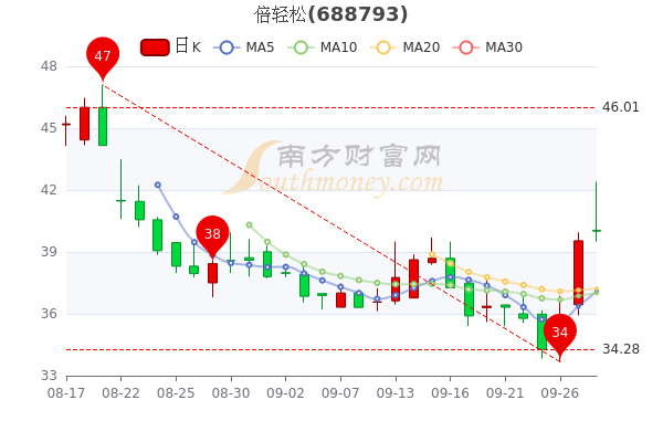 9月28日晚间复盘消息,倍轻松3日内股价上涨10.27%,最新报41.4元,成交额7331.35万元。