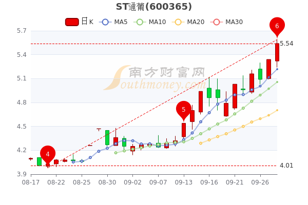 9月28日晚间复盘消息,ST通葡最新报价5.54元,涨3.75%,3日内股价上涨8.12%;今年来涨幅上涨25.27%,市盈率为554。