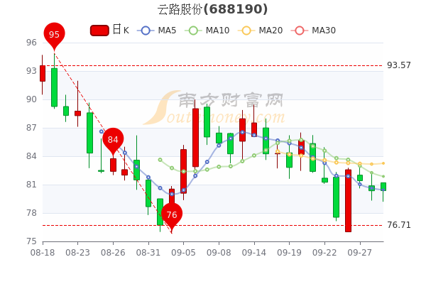 9月29日消息,云路股份5日内股价上涨3.5%,今年来涨幅下跌-49.83%,最新报79.7元,市盈率为62.07。