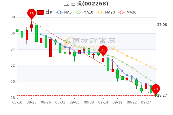 9月29日盘后消息,卫士通5日内股价下跌4.53%,截至15点,该股报28.61元,涨0.14%,总市值为239.13亿元。