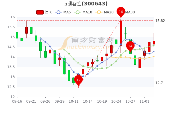 11月3日消息,万通智控开盘报价14.64元,收盘于14.800元,涨0.41%。今年来涨幅上涨12.36%,市盈率28.46。