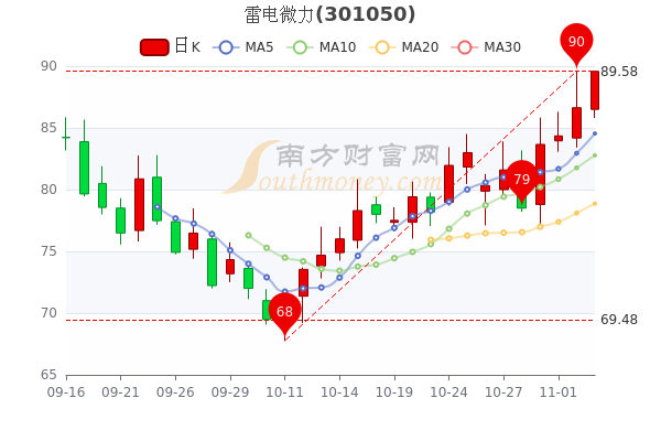 11月3日盘后消息,雷电微力最新报89.580元,成交量451.6万手,总市值为156.08亿元。
