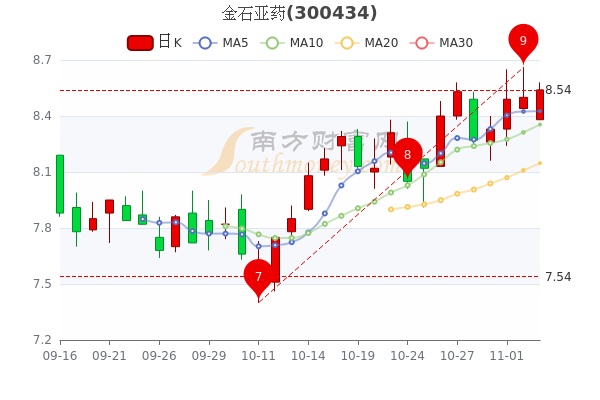 11月3日消息,金石亚药5日内股价上涨3.16%,最新报8.540元,成交量168.5万手,总市值为34.31亿元。