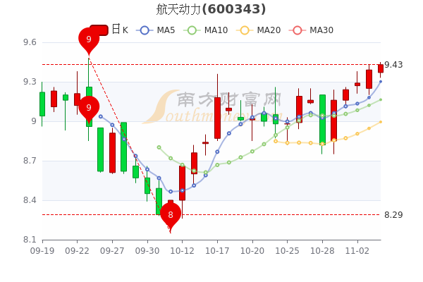 11月4日消息,航天动力3日内股价上涨1.48%,最新报9.430元,涨0.43%,成交额6763.92万元。
