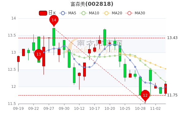 11月4日,富森美开盘报价11.8元,收盘于12.080元,涨2.37%。今年来涨幅下跌-4.97%,总市值为90.41亿元。