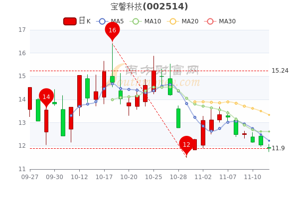 11月14日消息,宝馨科技5日内股价下跌4.96%,该股最新报11.900元跌1.16%,成交3.71亿元,换手率5.63%。