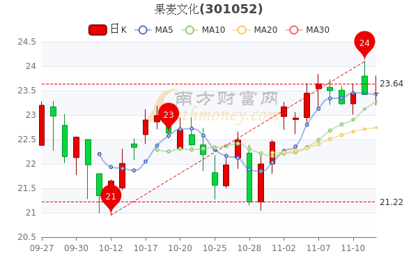 11月14日晚间复盘消息,果麦文化最新报价23.450元,市盈率为24.82。