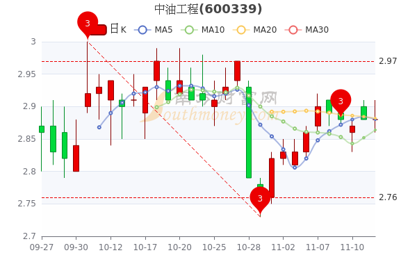 11月14日消息,中油工程今年来涨幅下跌-8.68%,最新报2.880元,成交额7206.27万元。